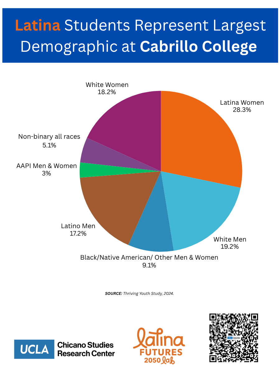 The UCLA Chicano Studies Research Center, Latina Futures 2050 Lab, and other collaborators, including the UC Santa Cruz Center for Labor and Community, have been conducting research in Santa Cruz County. Among the most recent findings are preliminary survey results pertaining to Cabrillo College students' demographics, labor experiences, and self-identification.