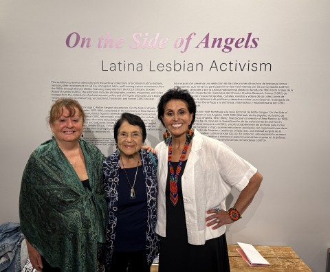 Our CSRC Library team’s expertise contributed to the well-received exhibition On the Side of Angels: Latina Lesbian Activism at the Vincent Price Art Museum (VPAM). More than 250 guests attended the opening reception on June 21, including civil rights legend Dolores Huerta. As a closing day event for this popular exhibition, VPAM has organized a free, public screening of the PBS documentary UNIDAD: Gay & Lesbian Latinos Unidos on August 30, followed by a panel discussion featuring several speakers, including policy and civil rights advocate Laura Esquivel and tenant rights attorney Elena Popp.