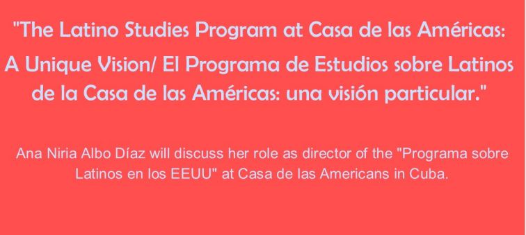 Ana Niria Albo Díaz, assistant director of The Programa de Estudios Sobre Latinos en los Estados Unidos, will discuss the program’s efforts to foster a critical dialogue about U.S. Latino culture.